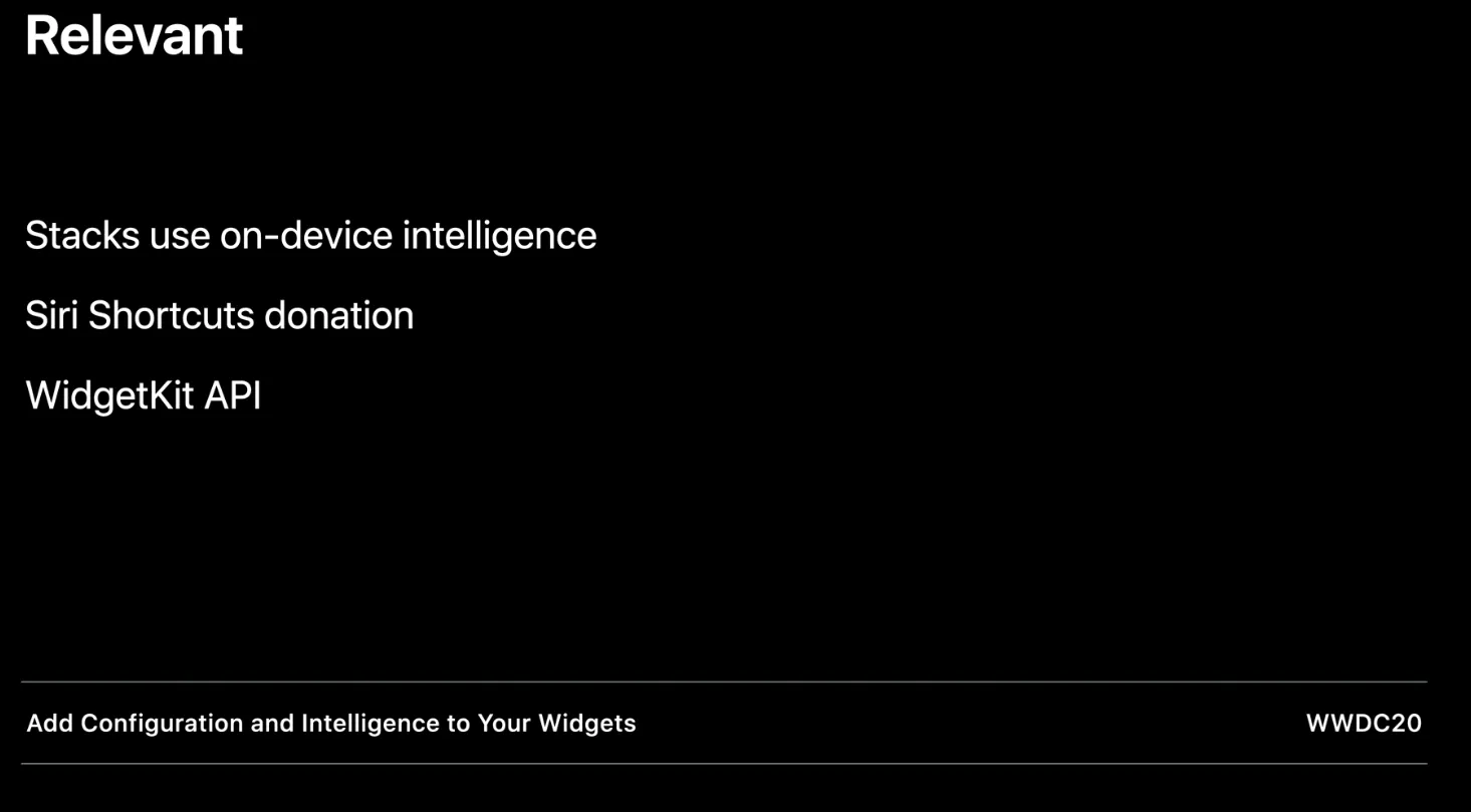 관련성에 있어서는 홈화면의 작은 프리미엄의 공간을 활용할수 있을지 그거를 이용하기 위해서 스택을 이용하던지 시리, 위젯킷들을 잘 활용할수 있어야 한다고 합니다. 해당부분은 아래 add configuration and inteligence to your widgets세션을 참고해라고 합니다.