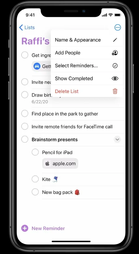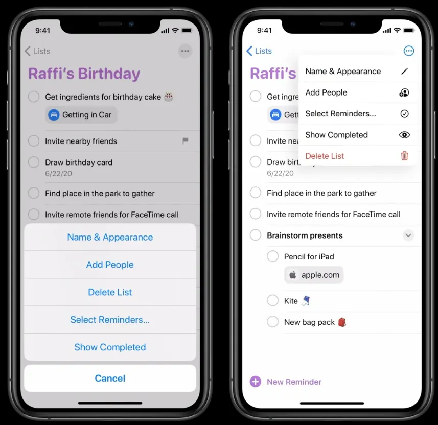 각 액션은 상황에 맞는 레이블과 옵션 아이콘이 있습니다. 오른쪽 아이콘은 사용자가 만든 아이콘이나 sf심볼일수 있습니다.