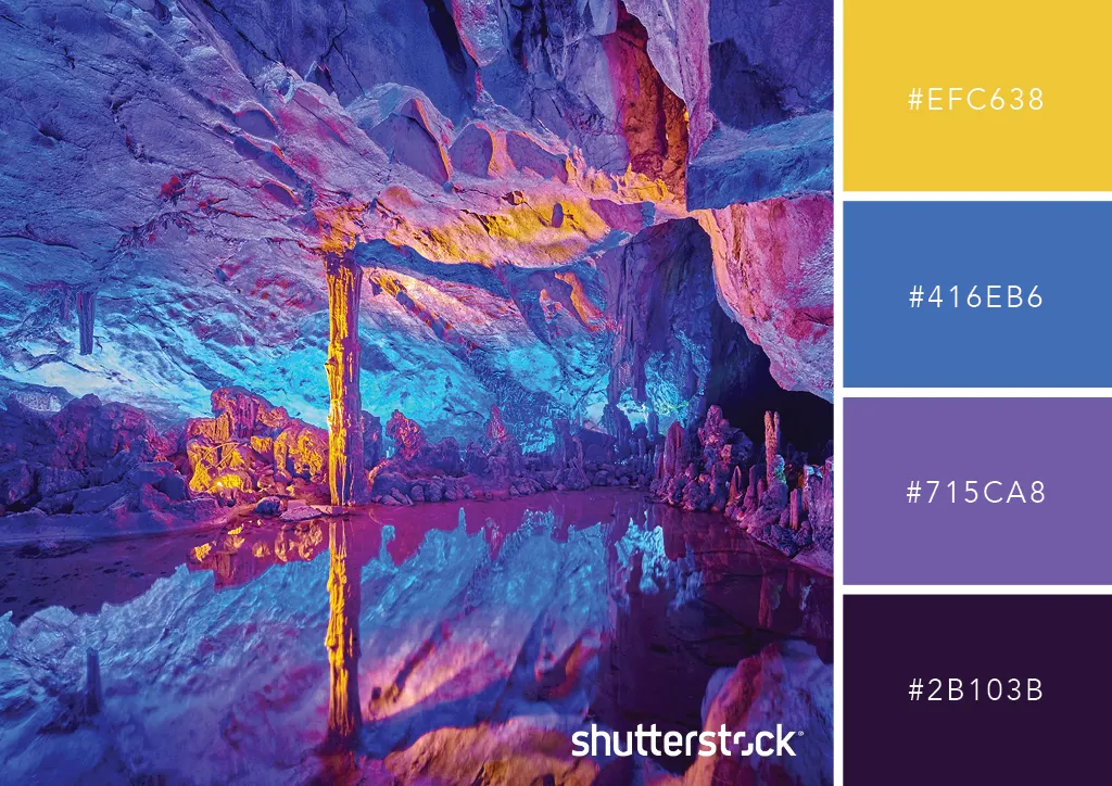 단색 색채 배합은 단일 색상에 중점을 두며 명색조, 톤, 암색조를 결합해 해당 색상을 변형한 색을 사용하기도 합니다. 평범한 팔레트 같지만, 컴포지션에 흥미로움과 차원을 더해줄 다양한 명도의 색상을 제공합니다.
