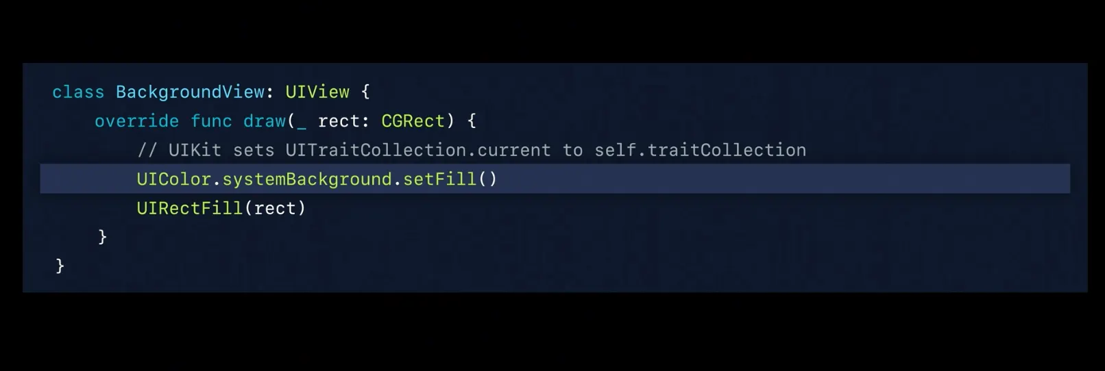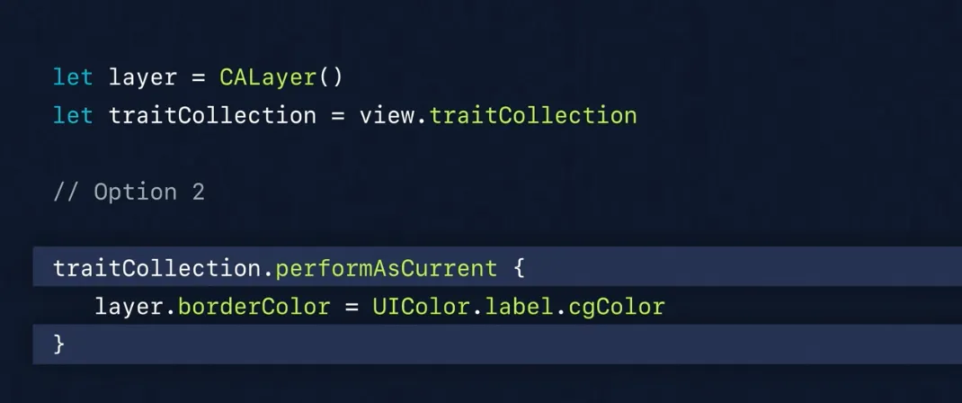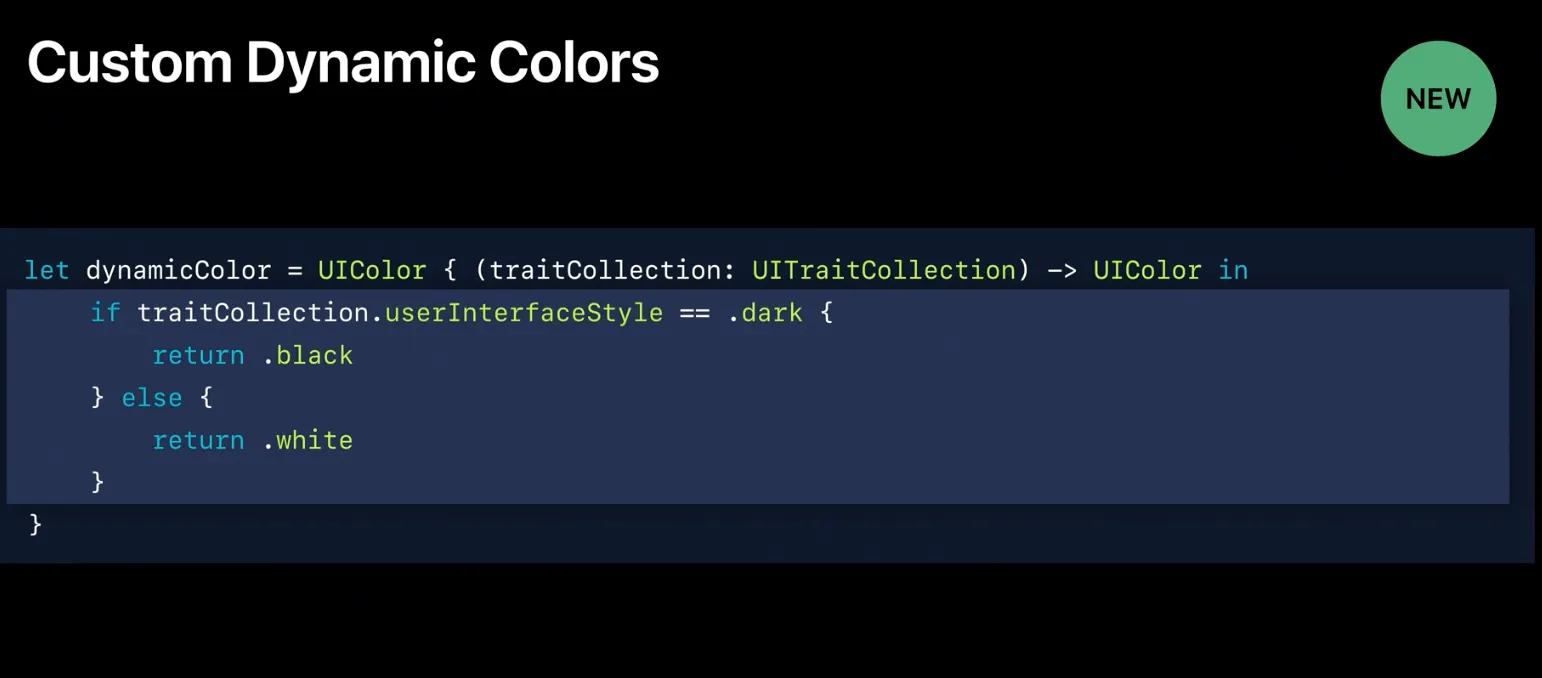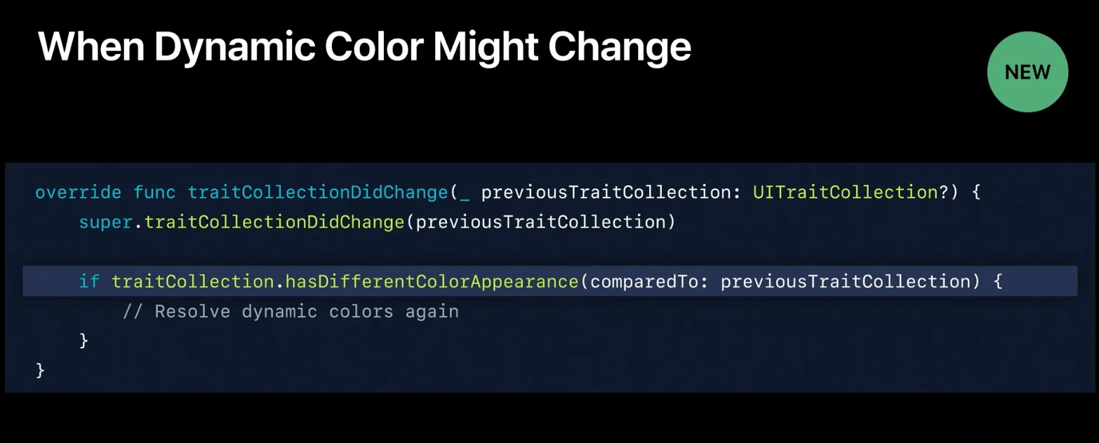 UIView에서는 UITraitCollection.current를 self.traitCollection으로 저장해주기에 아래와 같이 다이나믹컬러를 바로 사용할 수 있습니다