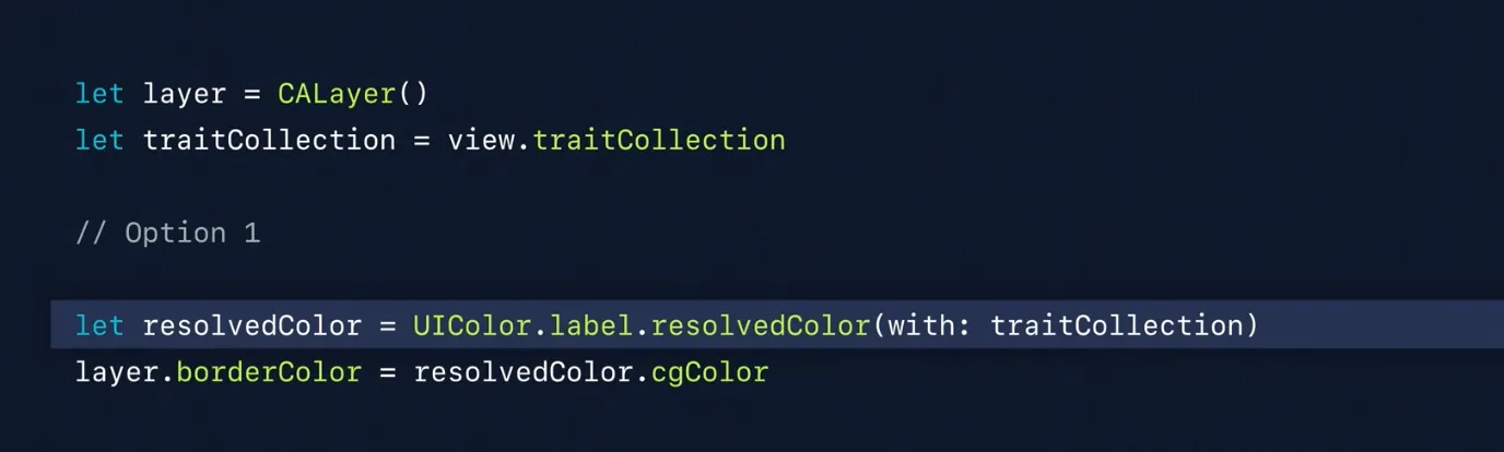 위와 같이 사용하면 resolvedColor에는 그 현재 모드에 맞는 컬러를 가지고 있게 됩니다