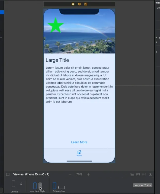 아래에 있는 interface style을 변경해서 스토리보드 프리뷰의 모드를 변경할수 있습니다