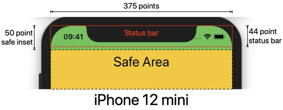 아이폰 12미니는 기존과 같게 44의 status Bar높이를 가지고 있습니다.