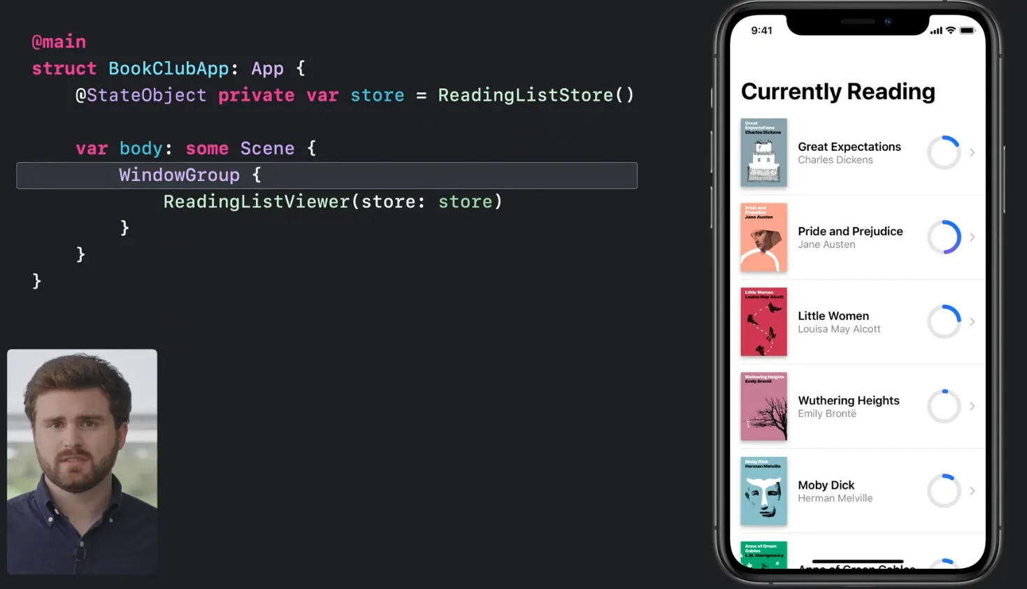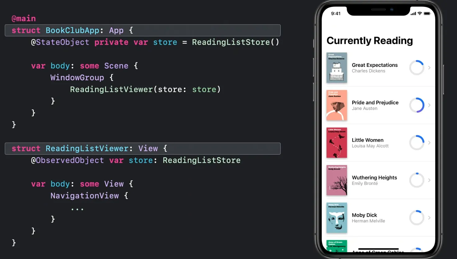 아래처럼 선언적 상태 주도 코드를 사용하는데 아래 앱 코드나 뷰 코드는 형태가 일치하는것을 볼 수 있습니다.