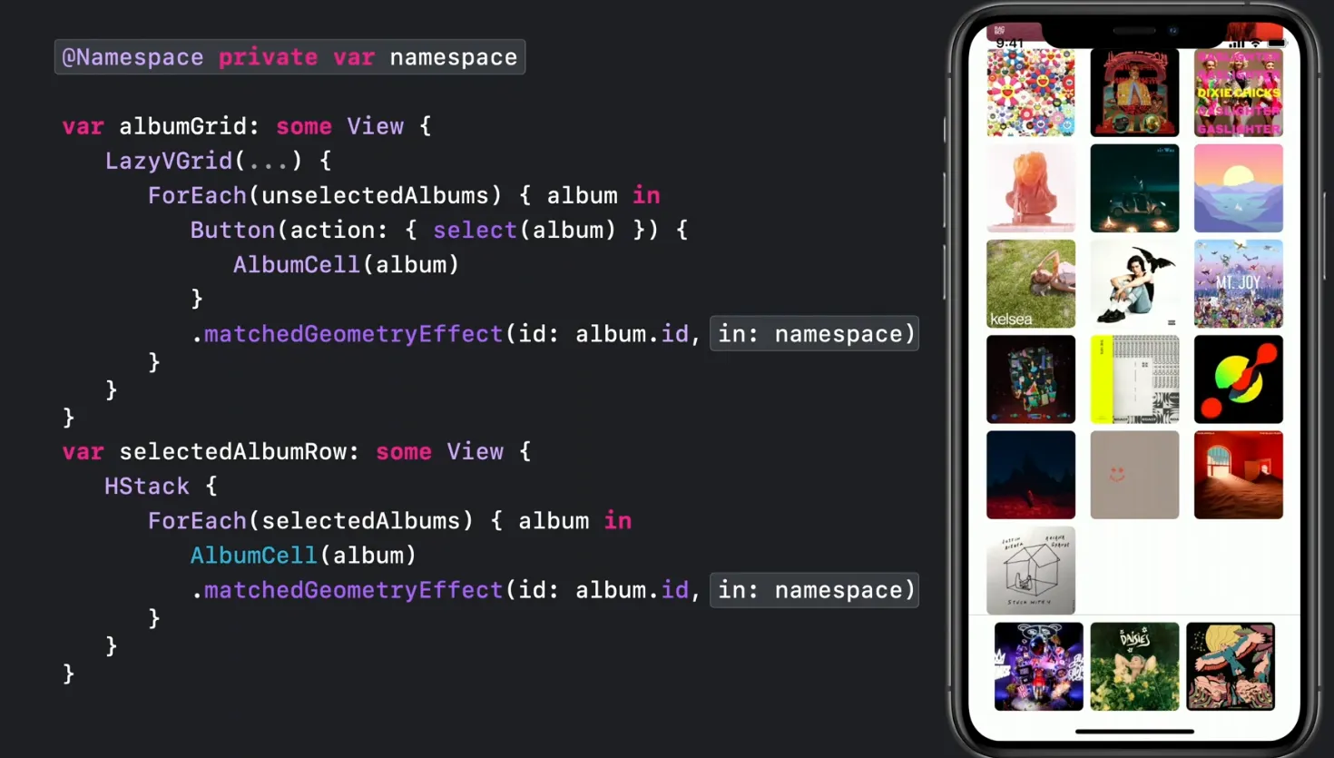 matchedGeometry에니메이션 효과를 통해 연관된 두개의 뷰사이의 에니메이션을 자연스럽게 할 수 있습니다.